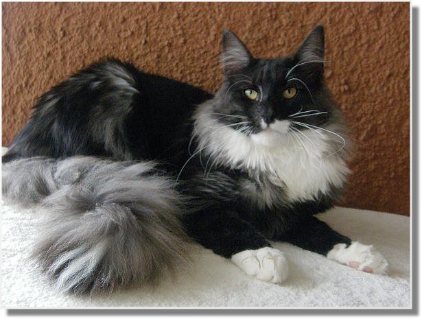 Cherokee hat einen langen hochbeinigen Köperbau, große spitze Ohren mit Pinseln, ein perfekt gerades Profil,